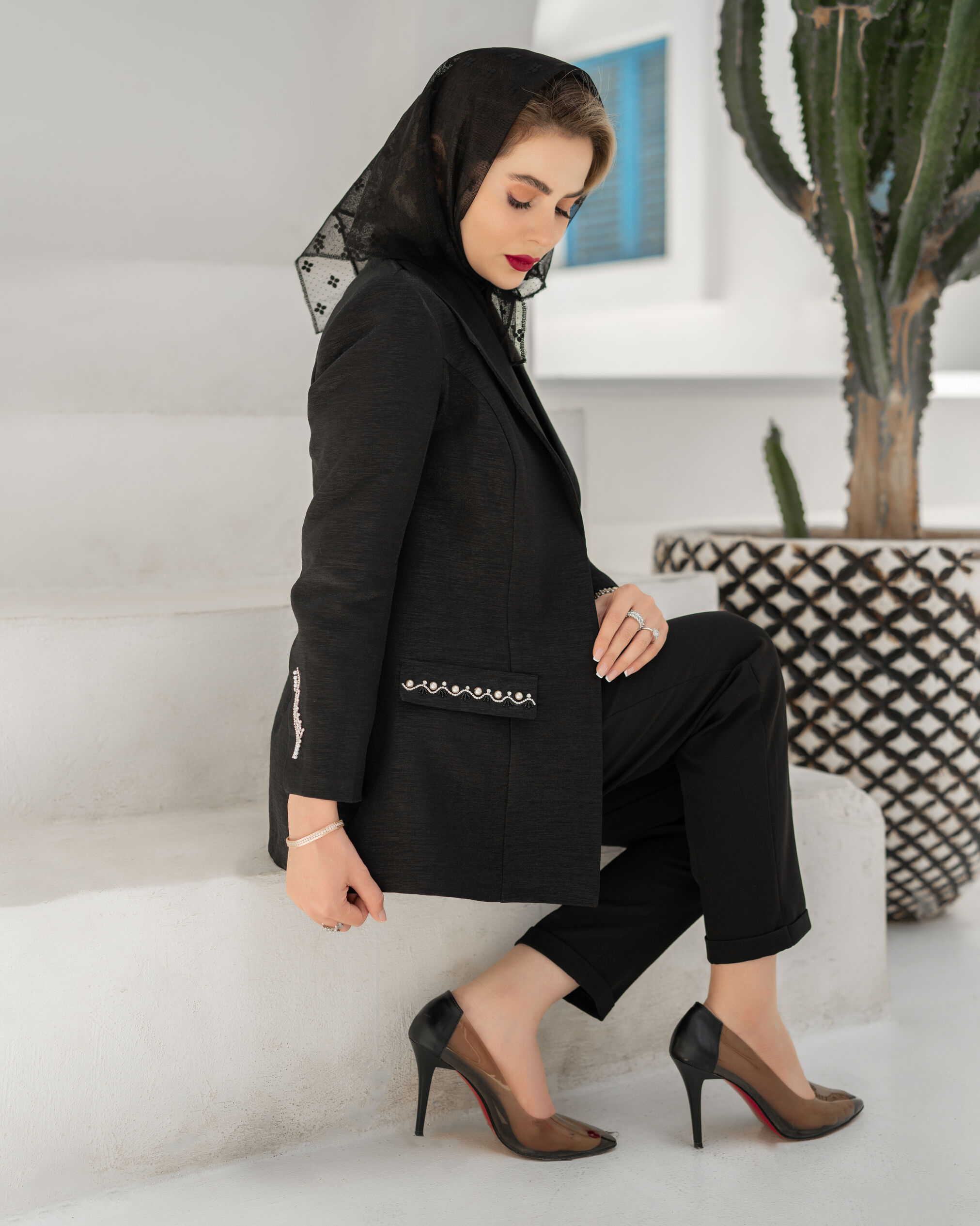 کت کرپ مشکی جواهردوزی نیلوفر