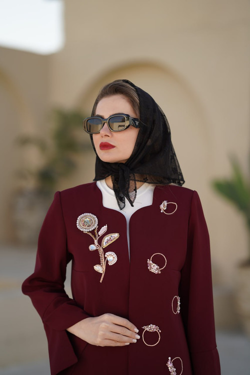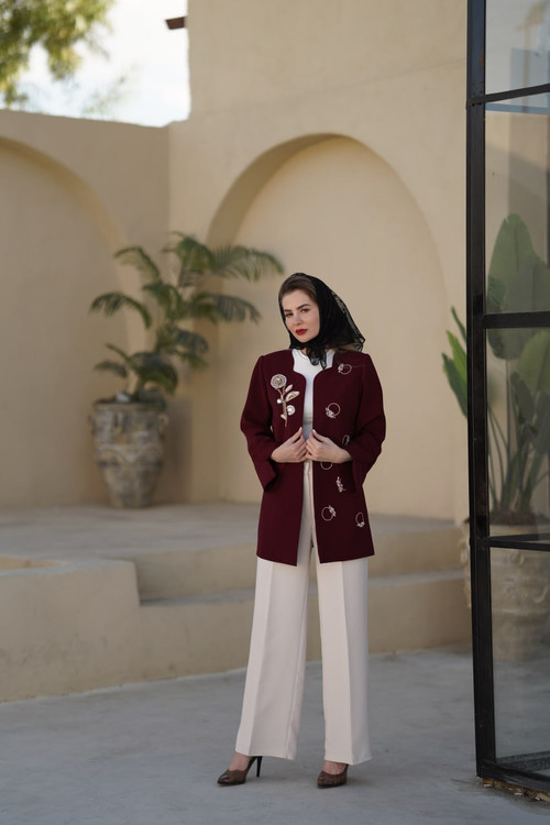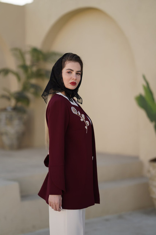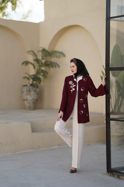 مشخصات کت کرپ زرشکی جواهردوزی "ترنم "